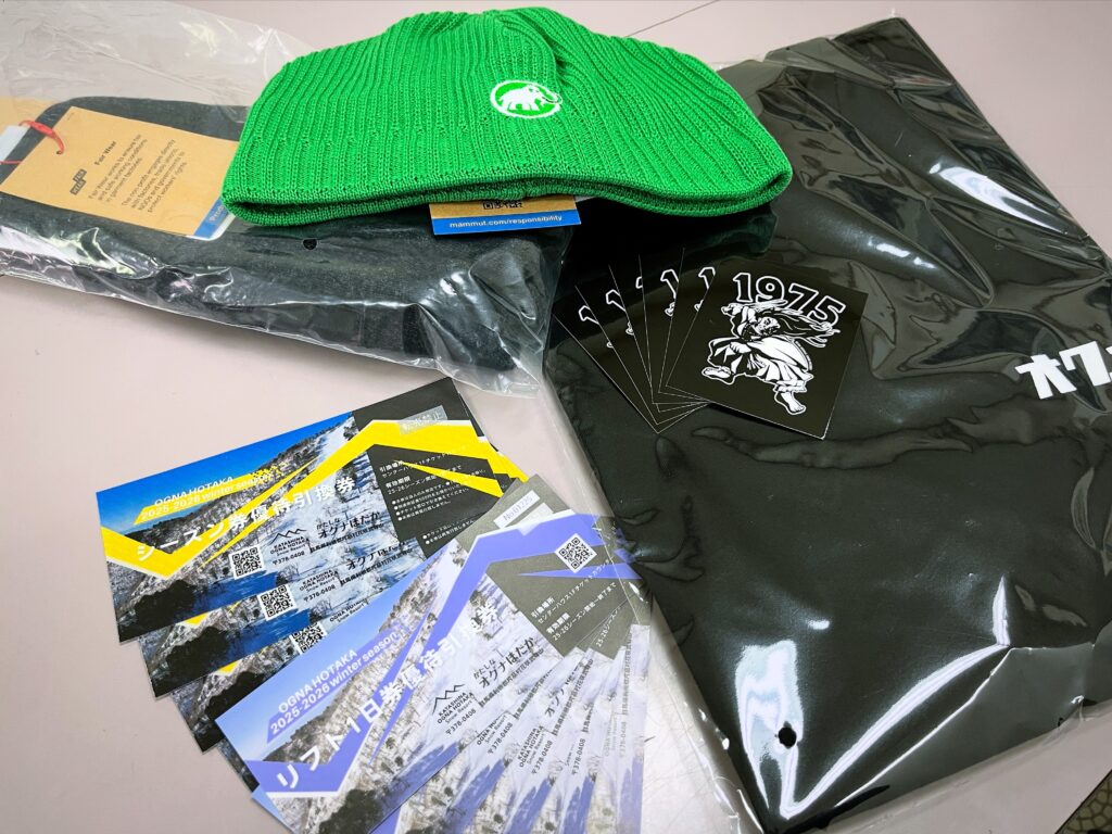 - 景品:シーズン券優待券、リフト1日券優待券、周年記念オリジナルグッズなど