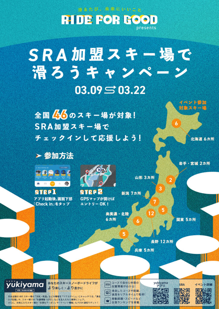 RIDE FOR GOOD presents「SRA加盟スキー場で滑ろうキャンペーン」が開催中!
