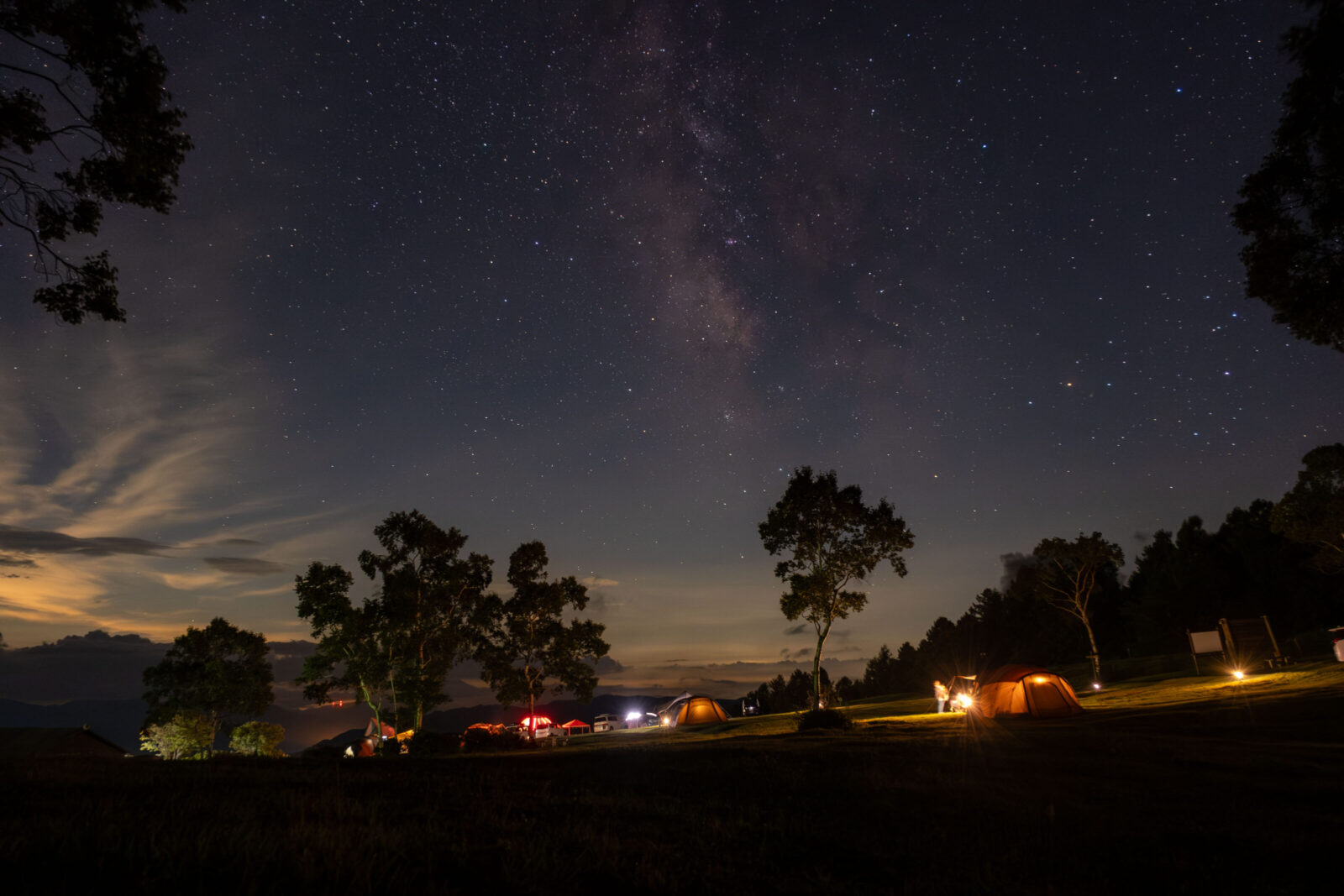 キャンプ場のある場所は、市街地から離れており、街の明かりや人家の明かりの影響を受けにくいです。さらに言えば、車の通りが無い場所だと落ち着いて見れますね。